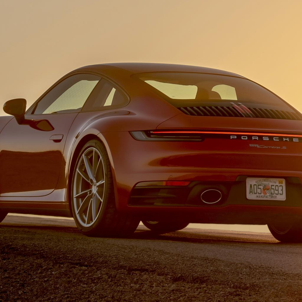 Обои Красный автомобиль Porsche 911 Carrera S, 2020 года вид сзади