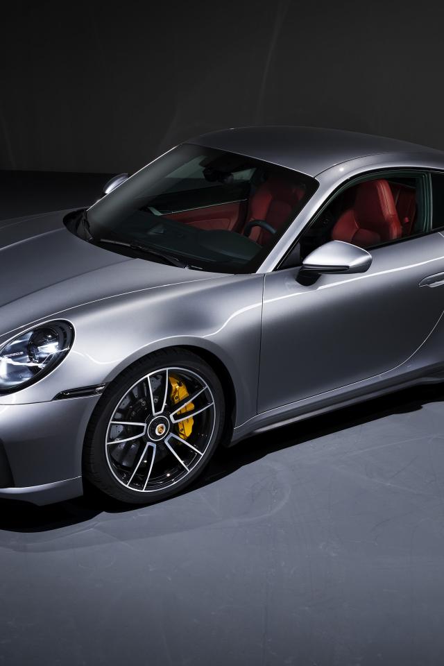 Обои Серебристый автомобиль Porsche 911 Turbo S 2020 года вид сверху