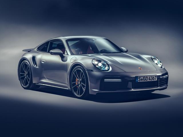 Обои Автомобиль Porsche 911 Turbo S 2020 года на сером фоне