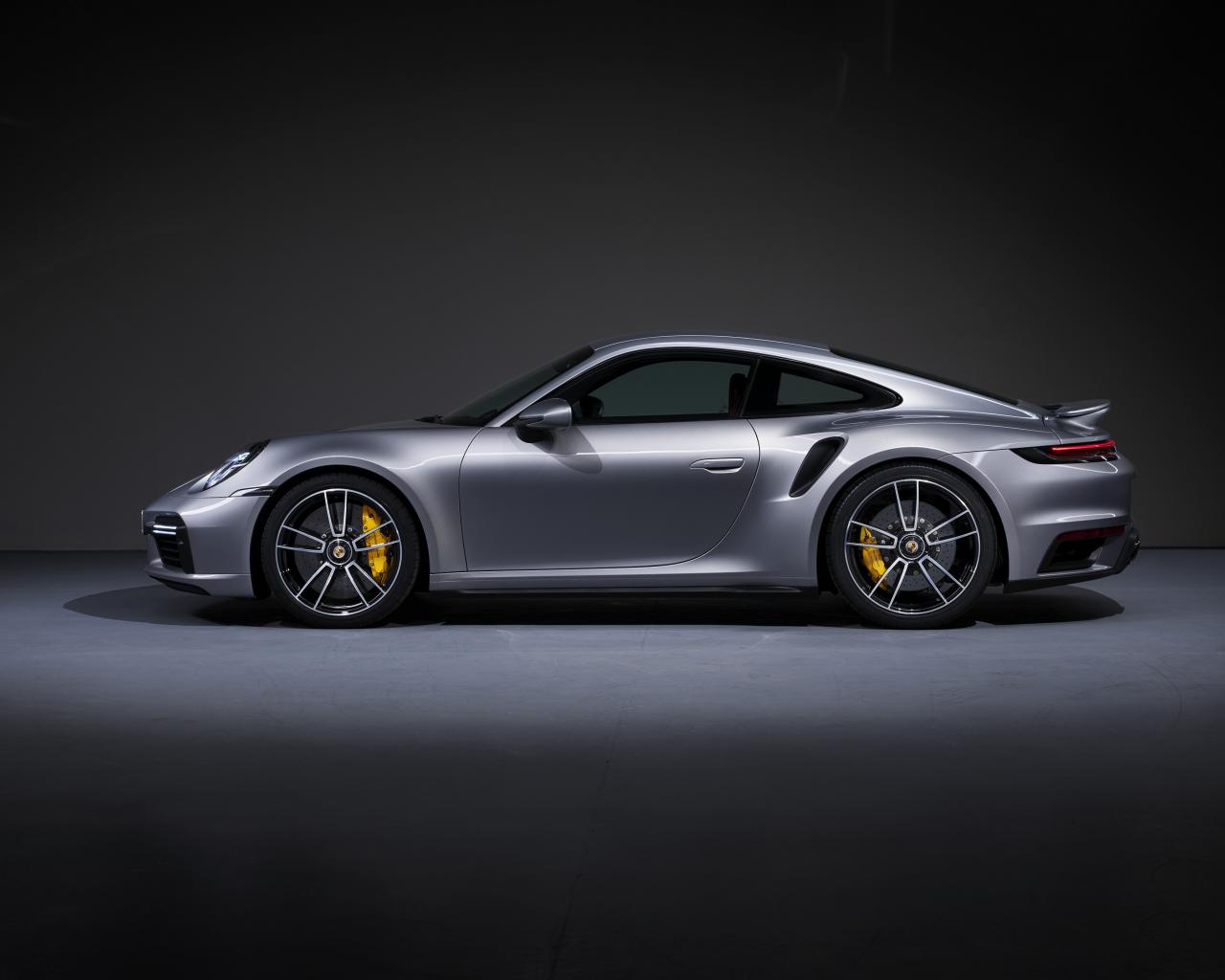 Обои Серебристый автомобиль Porsche 911 Turbo S 2020 года вид сбоку