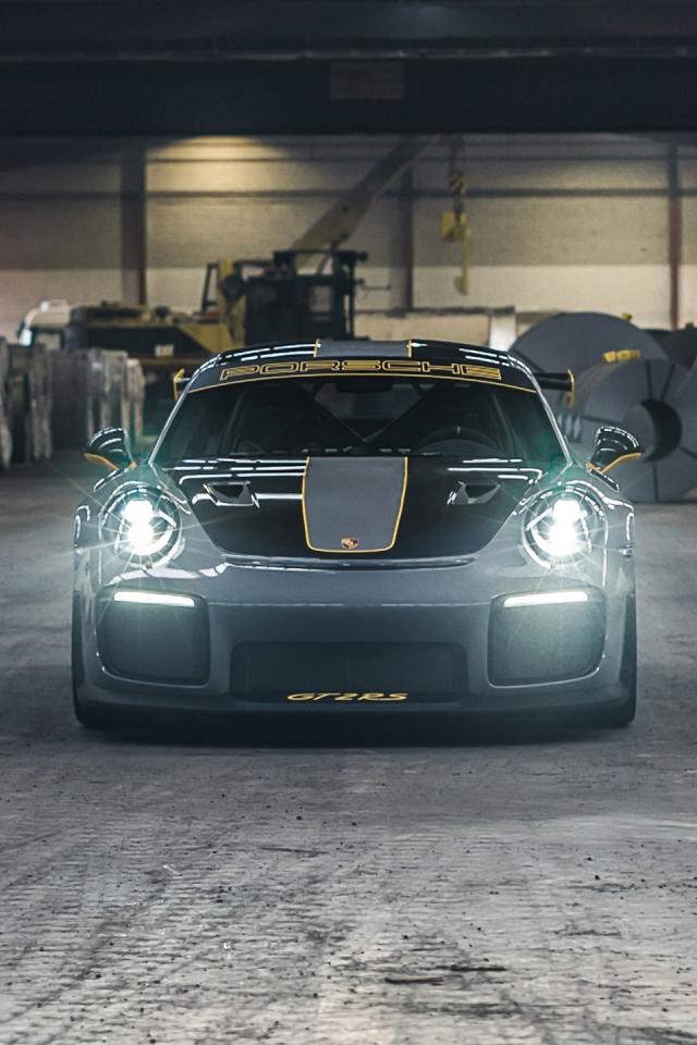 Обои Автомобиль Porsche 911 GT2 RS 2020 года с включенными фарами
