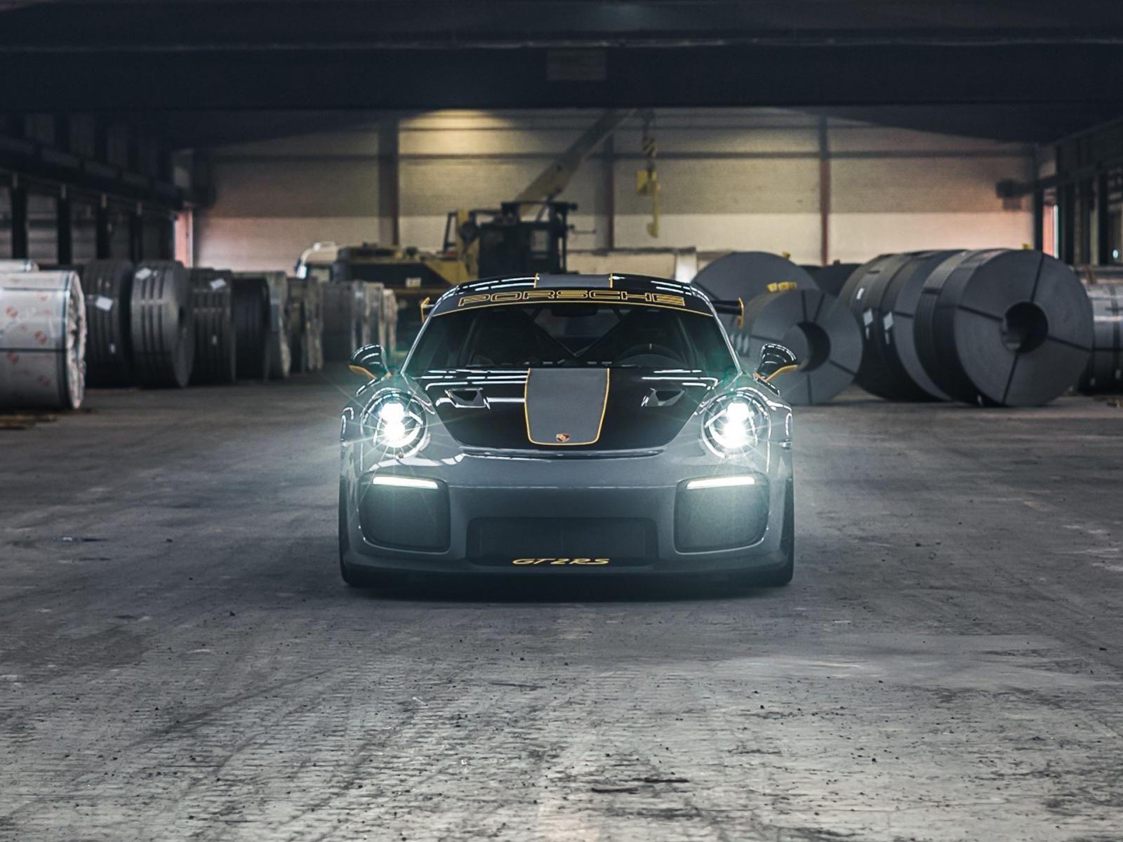 Обои Автомобиль Porsche 911 GT2 RS 2020 года с включенными фарами