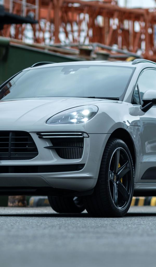 Обои Серебристый Porsche Macan Turbo 2020 года в порту