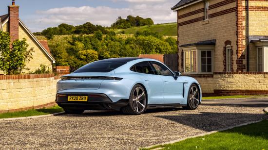 Обои Автомобиль Porsche Taycan 4S 2021 года у дома