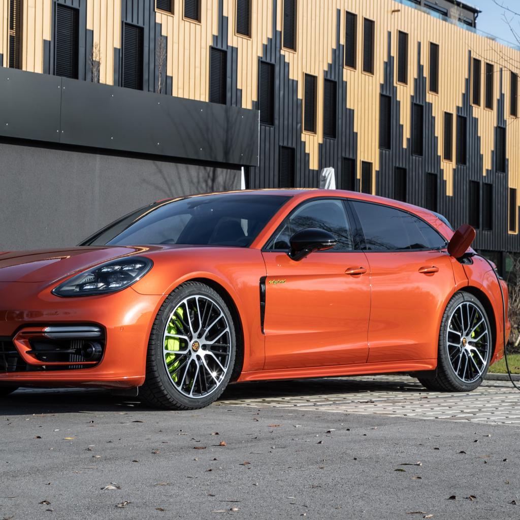 Обои Автомобиль Porsche Panamera 4 E-Hybrid 2021 года на заправке