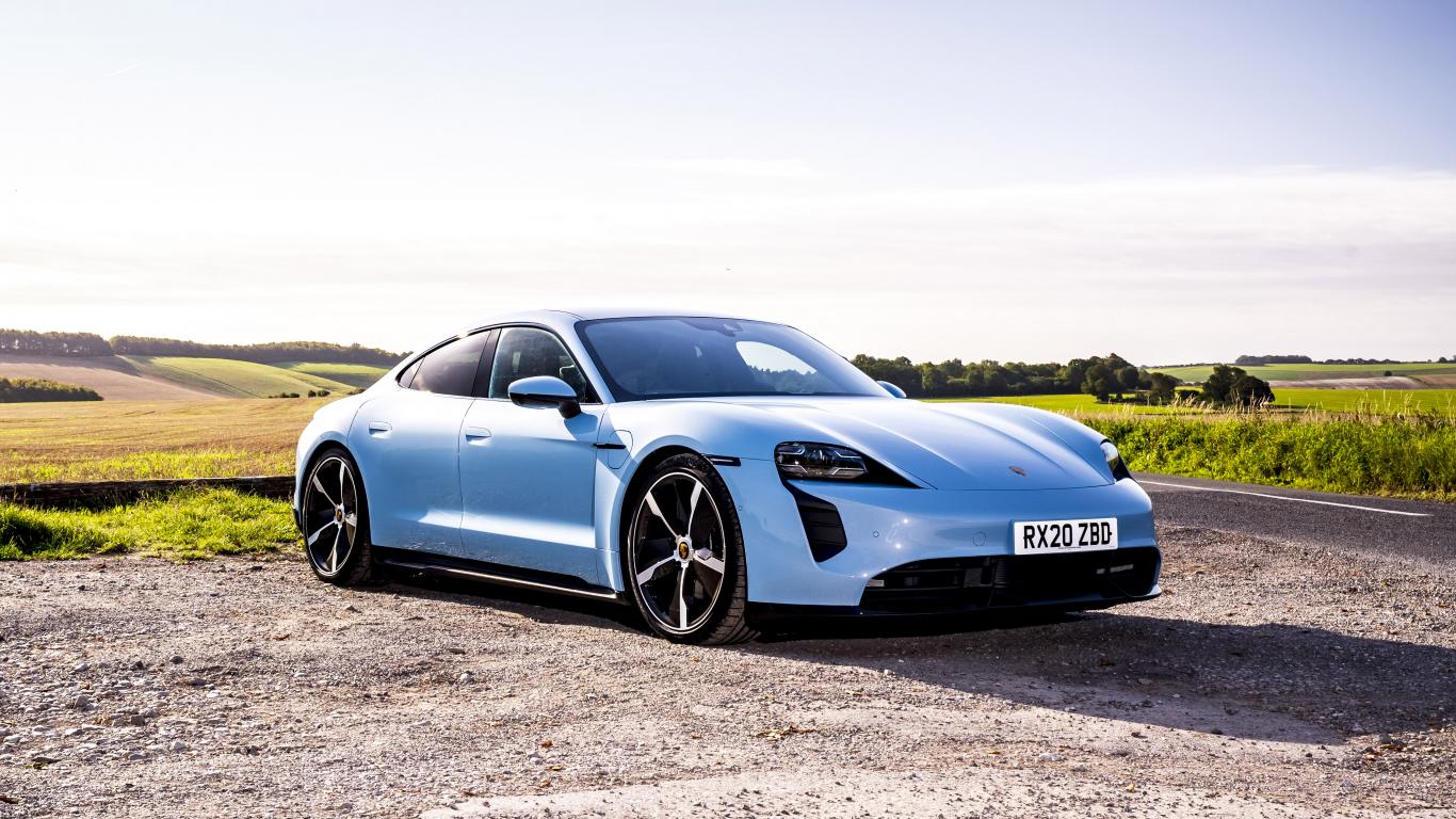 Обои Голубой автомобиль Porsche Taycan 4S 2021 года