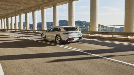 Обои Внедорожник Porsche Taycan 4S Cross Turismo 2021 года на мосту