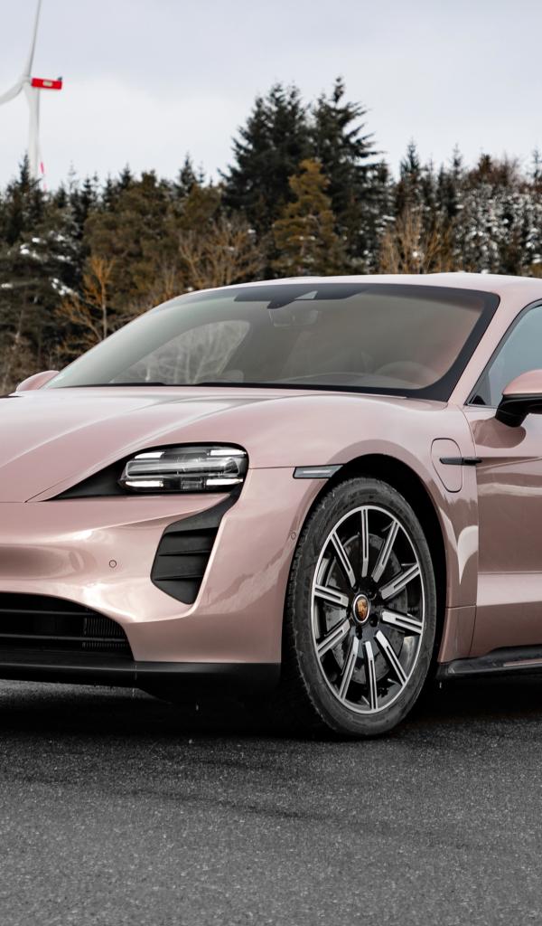 Обои Автомобиль Porsche Taycan 2021 года на фоне леса