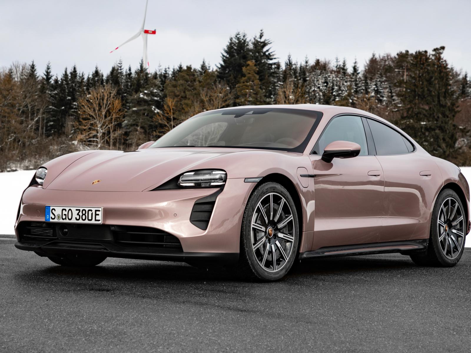 Обои Автомобиль Porsche Taycan 2021 года на фоне леса