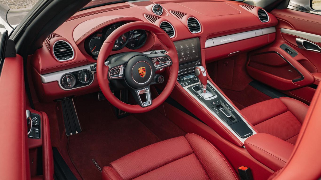 Обои Красный кожаный салон автомобиля Porsche Boxster 25 Jahre 2021 года