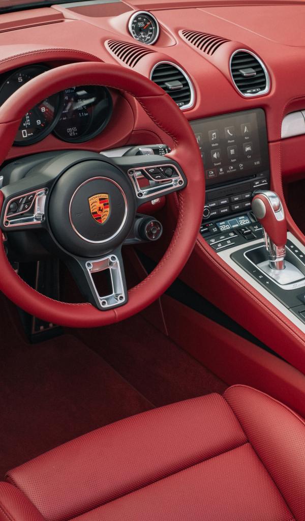 Обои Красный кожаный салон автомобиля Porsche Boxster 25 Jahre 2021 года