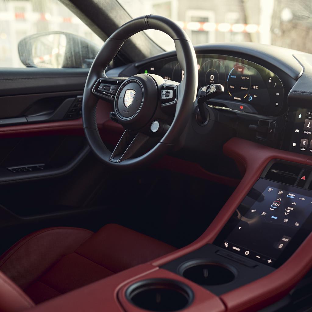 Обои Кожаный салон автомобиля Porsche Taycan Turbo S Cross Turismo 2021 года