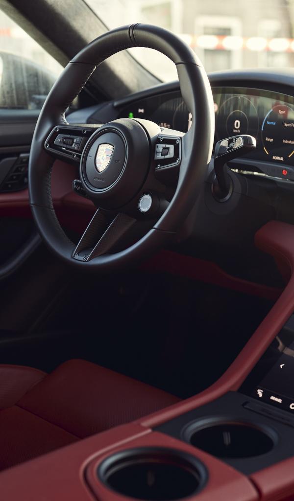 Обои Кожаный салон автомобиля Porsche Taycan Turbo S Cross Turismo 2021 года