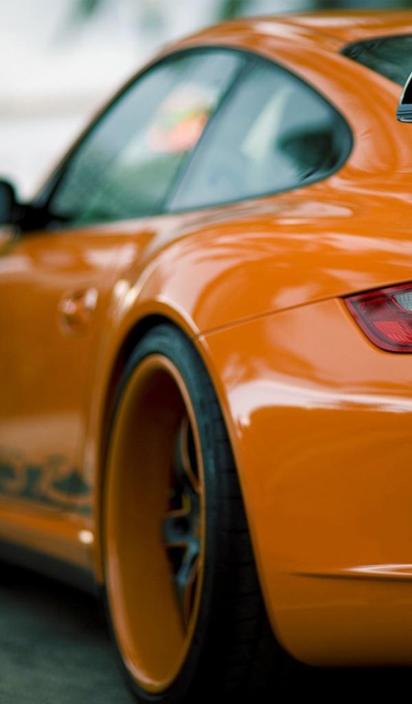 Обои Оранжевый Порш, вид сзади