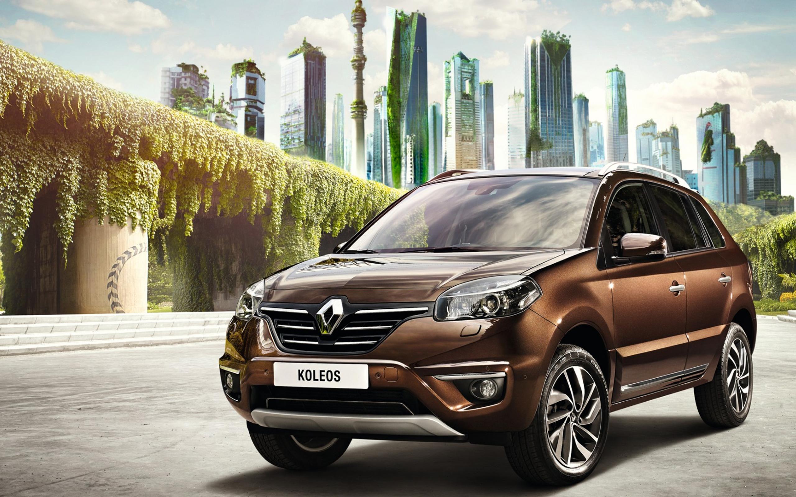 Обои Коричневый автомобиль Рено Колеос на фоне города