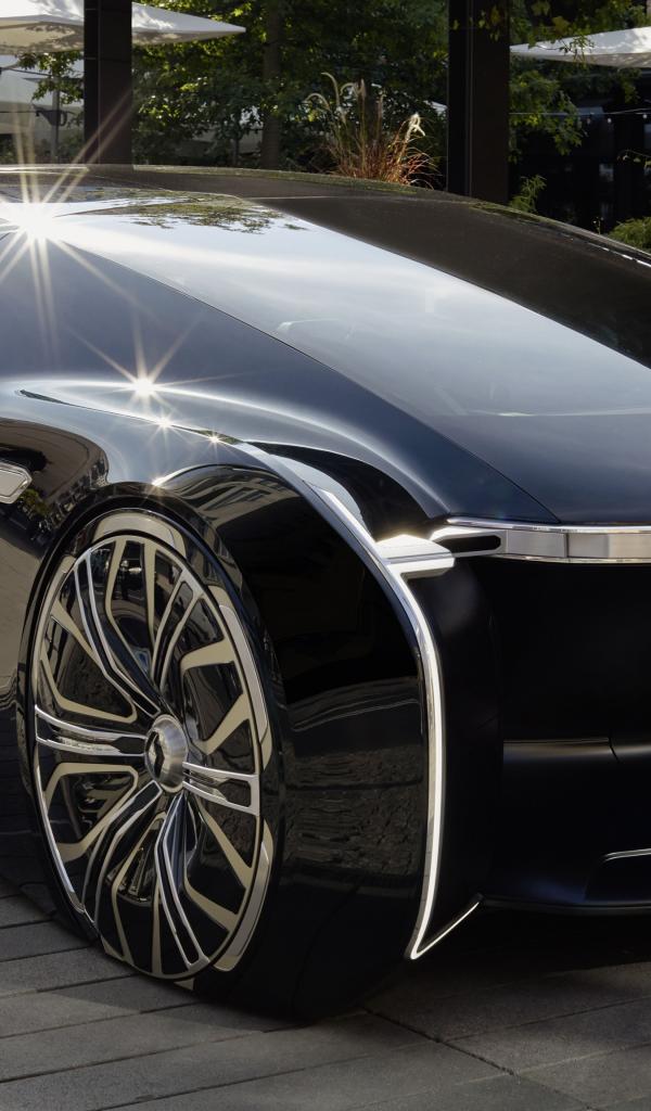 Обои Красивый автомобиль Renault EZ-Ultimo 2018 года у кафе