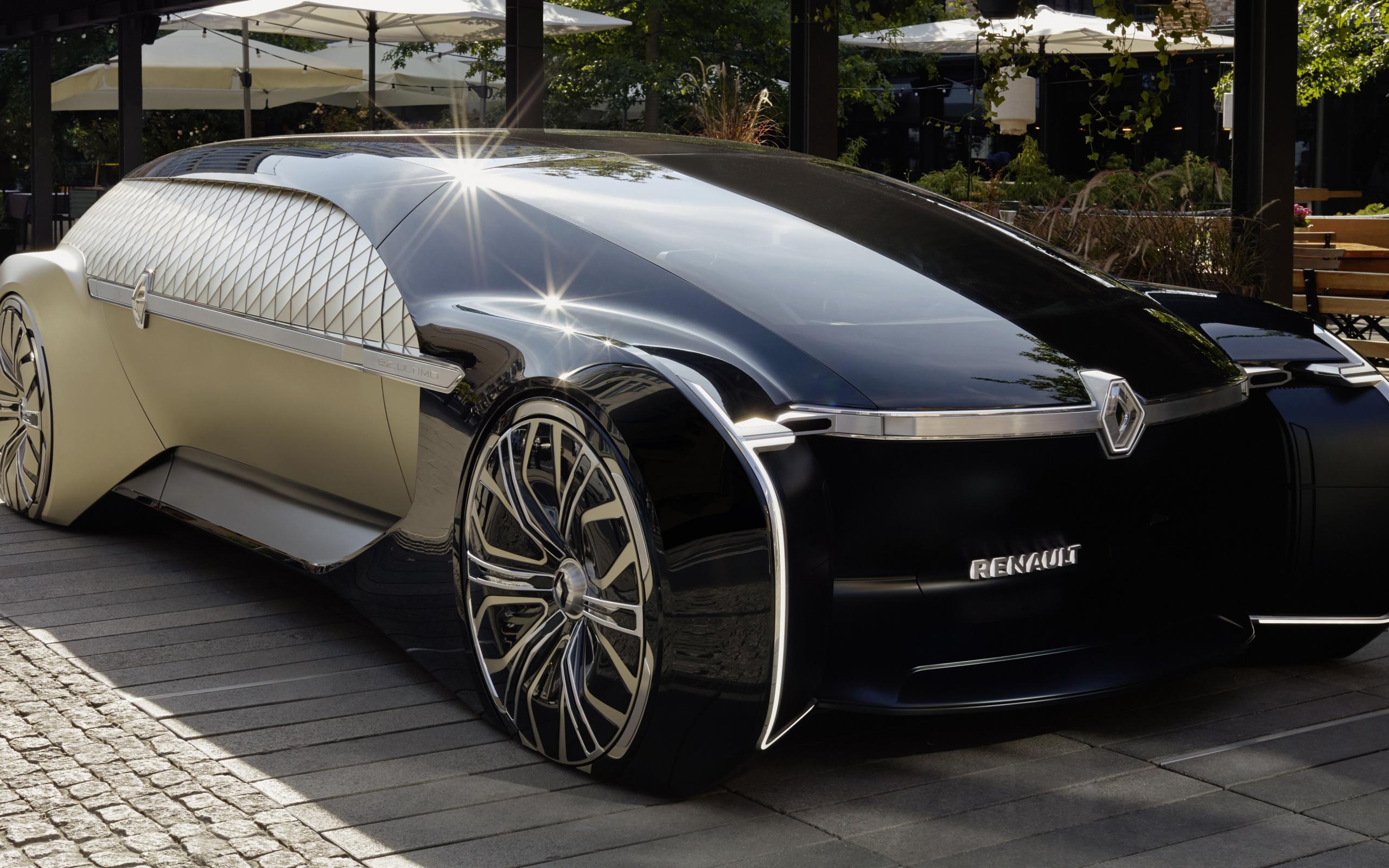 Обои Красивый автомобиль Renault EZ-Ultimo 2018 года у кафе