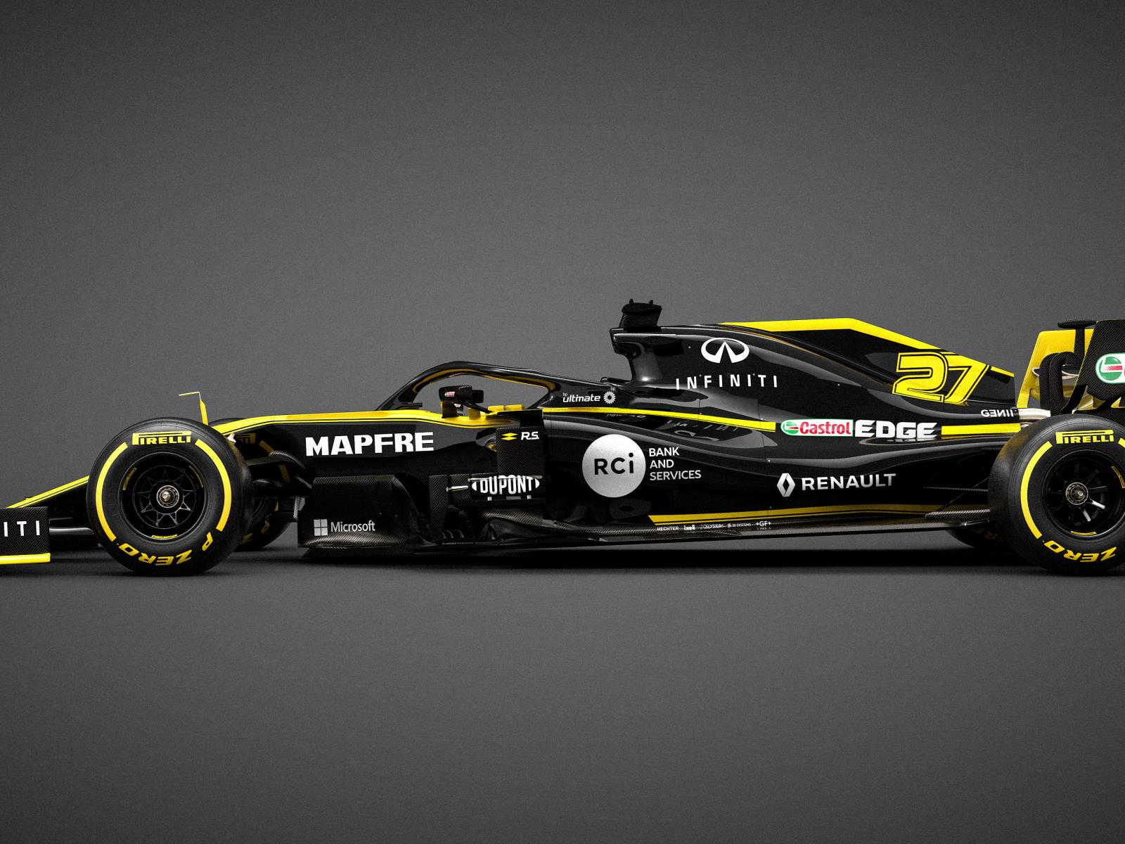 Обои Гоночный автомобиль Renault R.S.19 2019 года на сером фоне