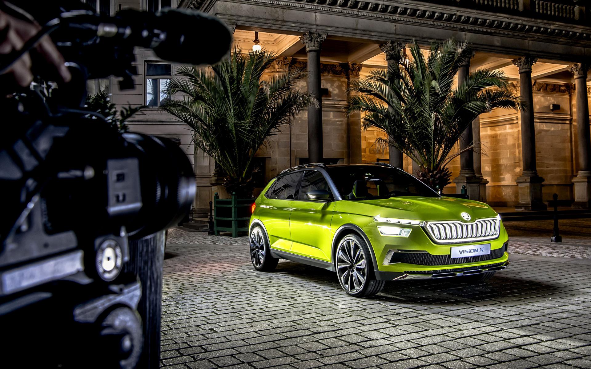 Обои Внедорожник Skoda Vision X 2019 года у старого здания
