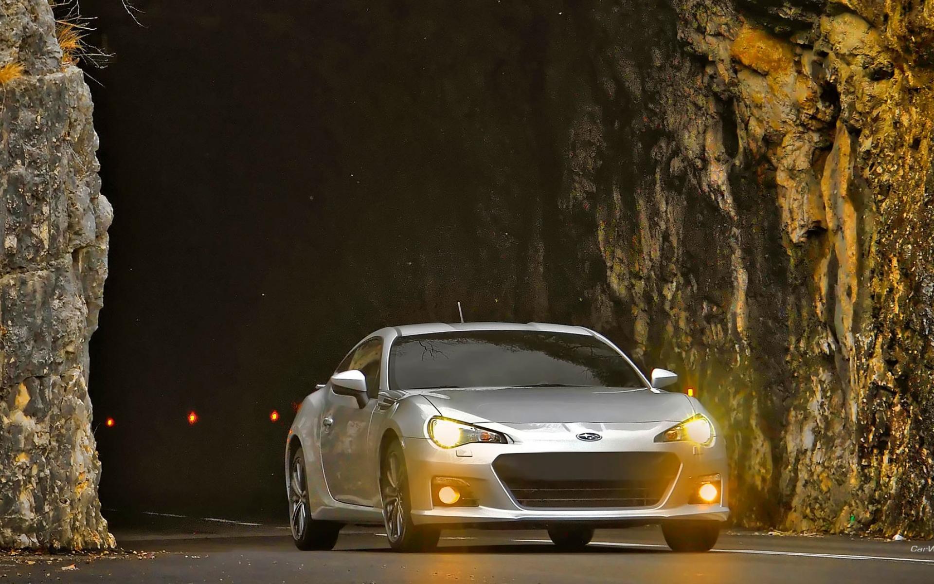 Обои Серебристый Subaru BRZ выезжает из тоннеля