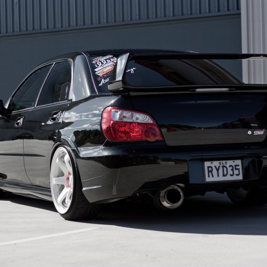 Обои Вид сзади на черную Subaru Impreza WRX STi
