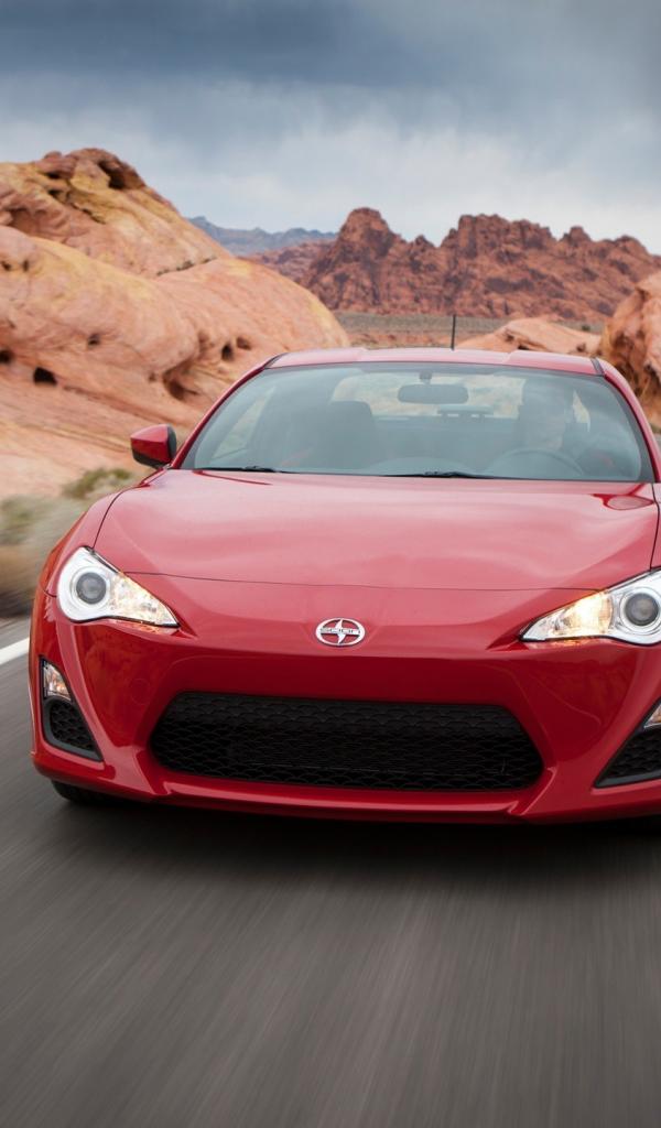 Обои Красный автомобиль Toyota GT86 на трассе