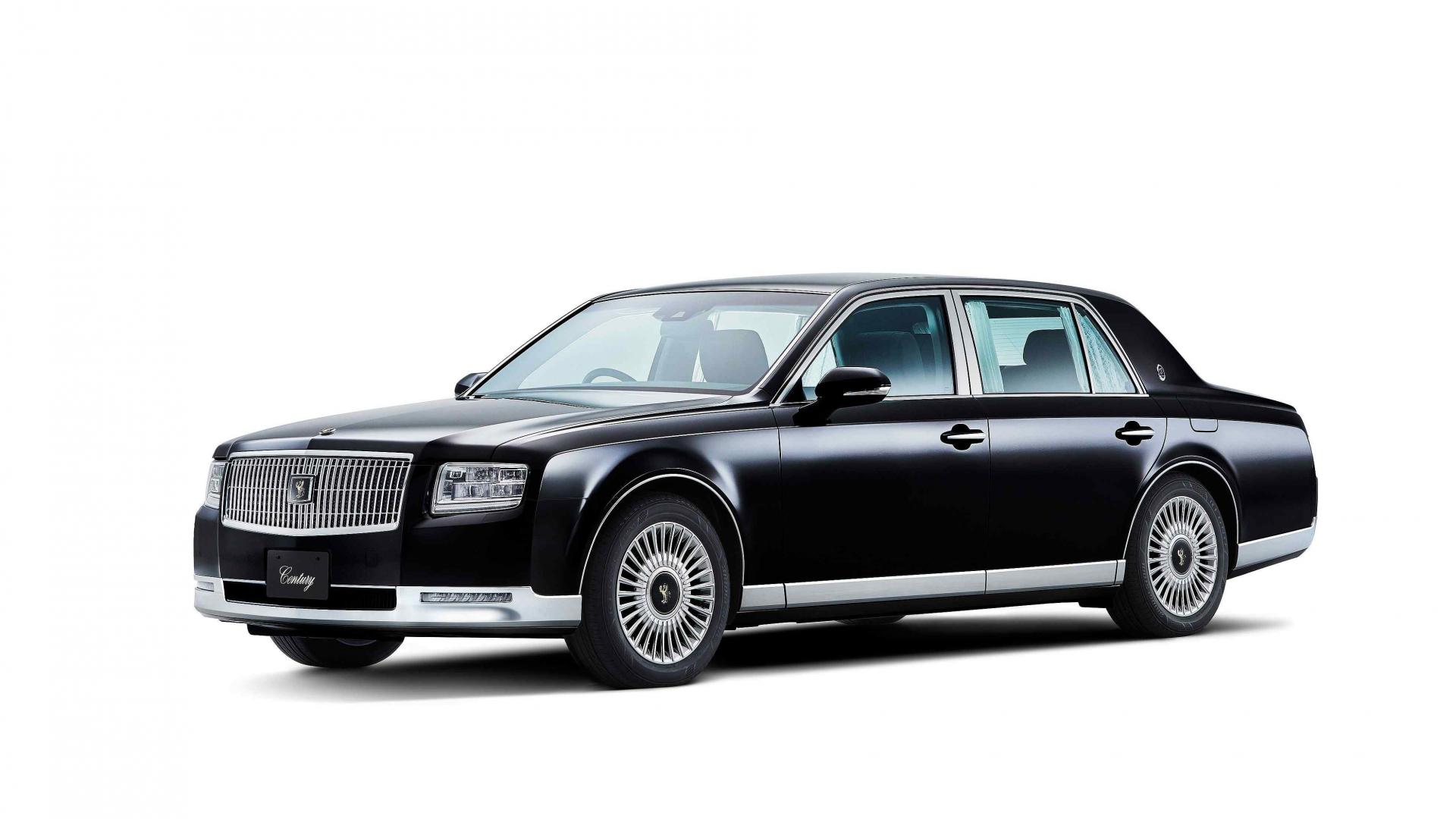Обои Стильный черный автомобиль Toyota Century, 2018 на белом фоне