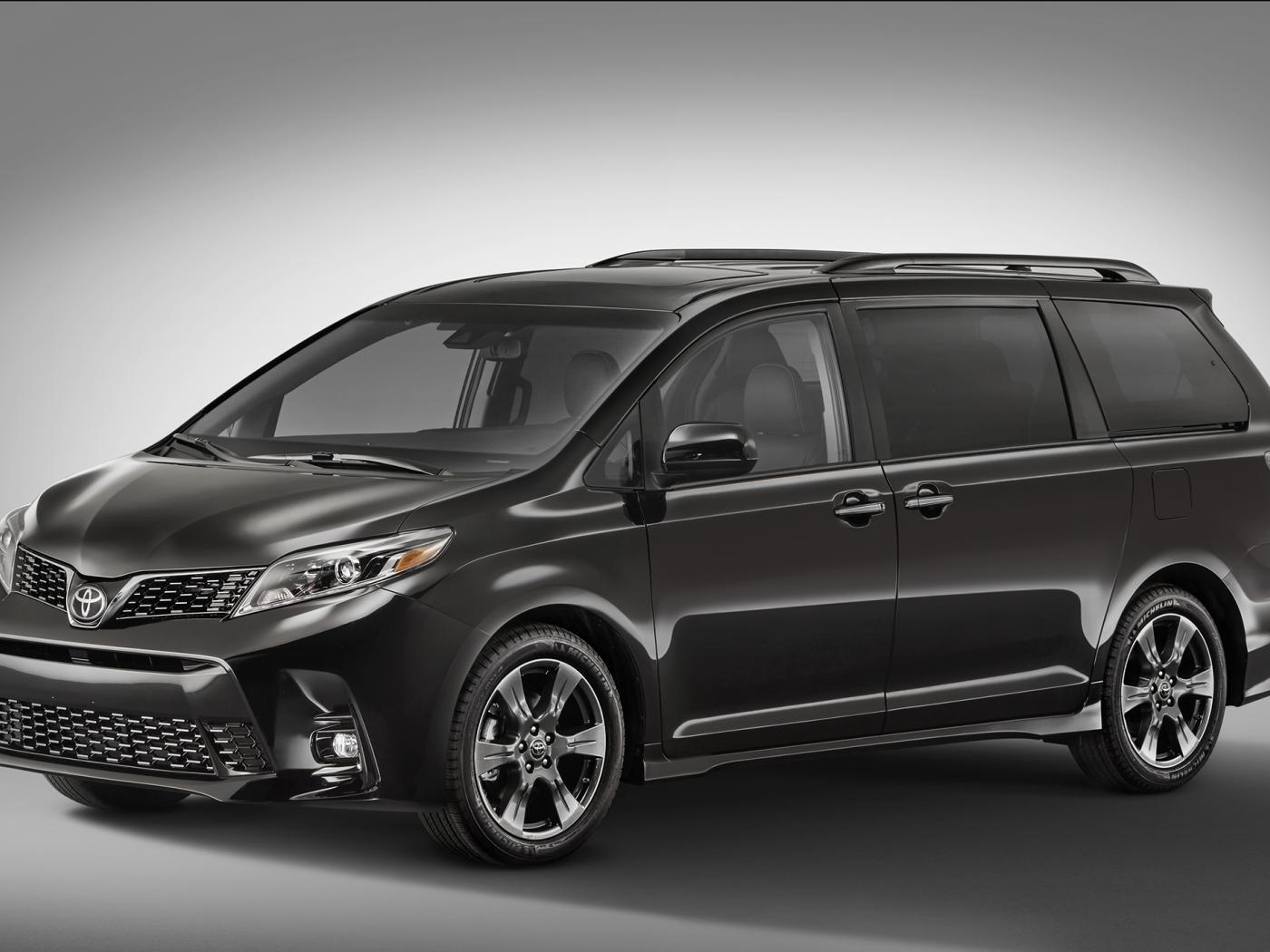 Обои Минивэн Toyota Sienna, 2018 на сером фоне