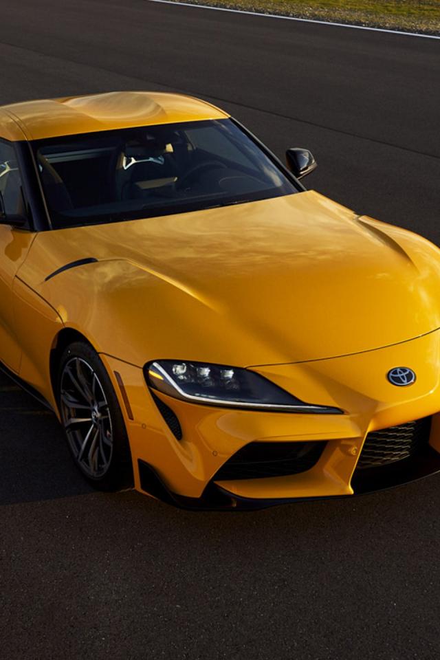 Обои Желтый автомобиль Toyota GR Supra, 2021 года на трассе