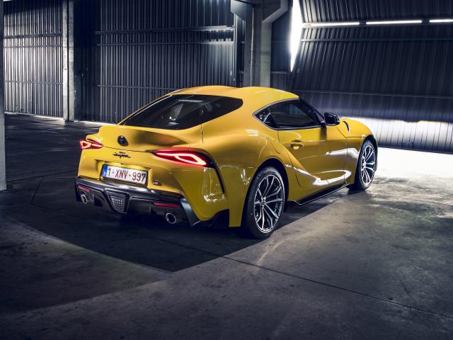 Обои Желтый автомобиль Toyota GR Supra 2 2020 года в гараже