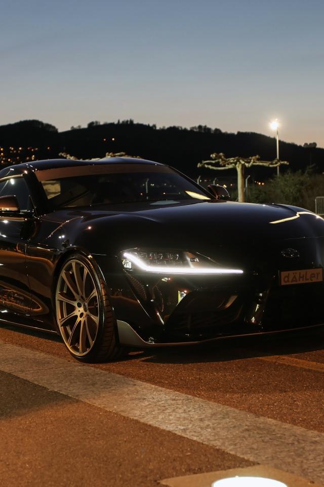 Обои Черный автомобиль Toyota GR Supra 2020 года в парке