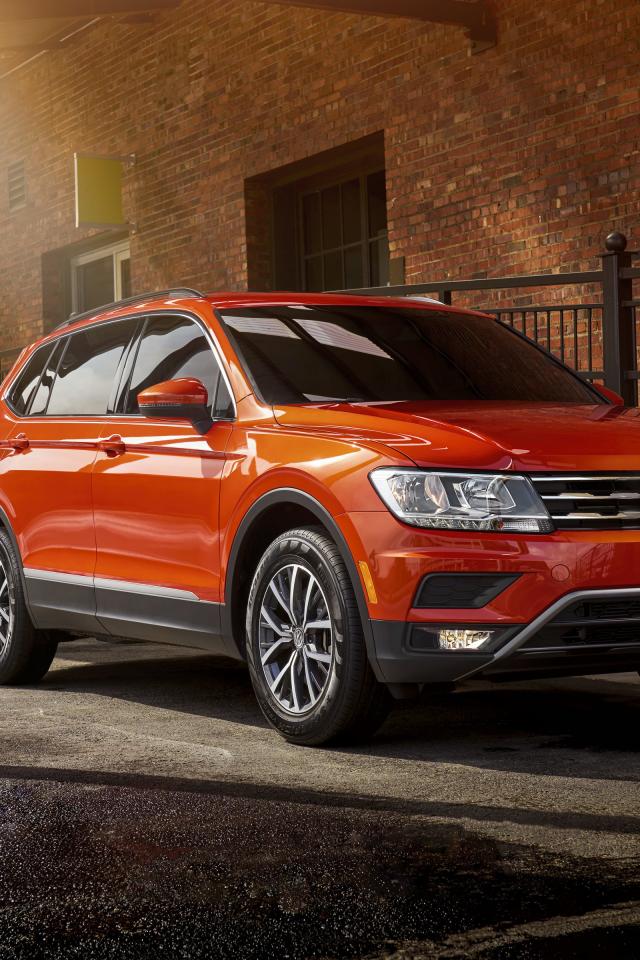 Обои Красный внедорожник Volkswagen Tiguan, 2018 года в городе