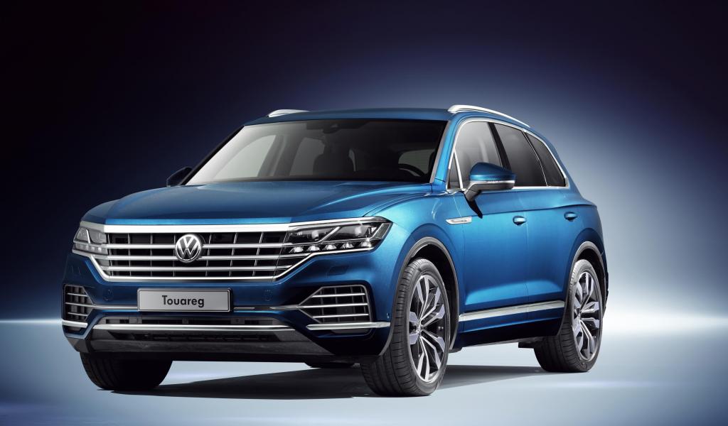 Обои Синий автомобиль Volkswagen Touareg 2019 года