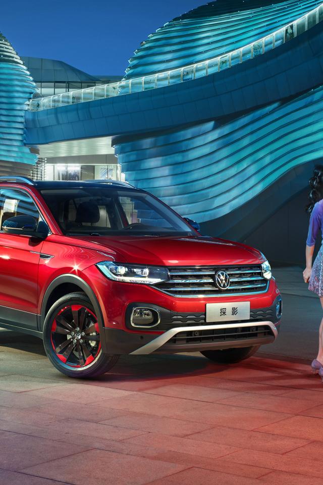 Обои Пара стоит у красного внедорожника Volkswagen Tacqua 280 TSI 2019