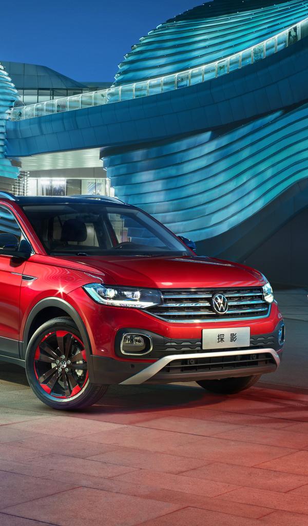 Обои Пара стоит у красного внедорожника Volkswagen Tacqua 280 TSI 2019
