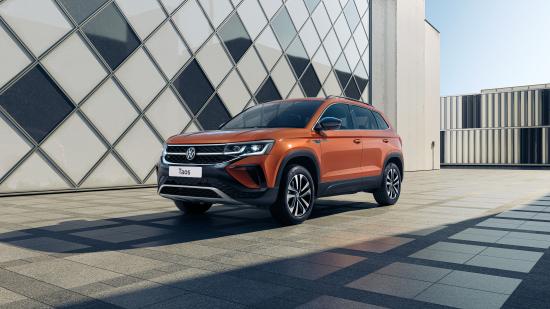 Обои Внедорожник Volkswagen Taos 4MOTION 2021 года у стены