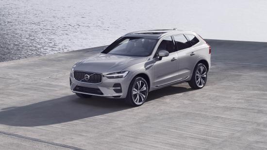 Обои Серебристый автомобиль Volvo XC60 T8 Recharge AWD, 2021 года у воды