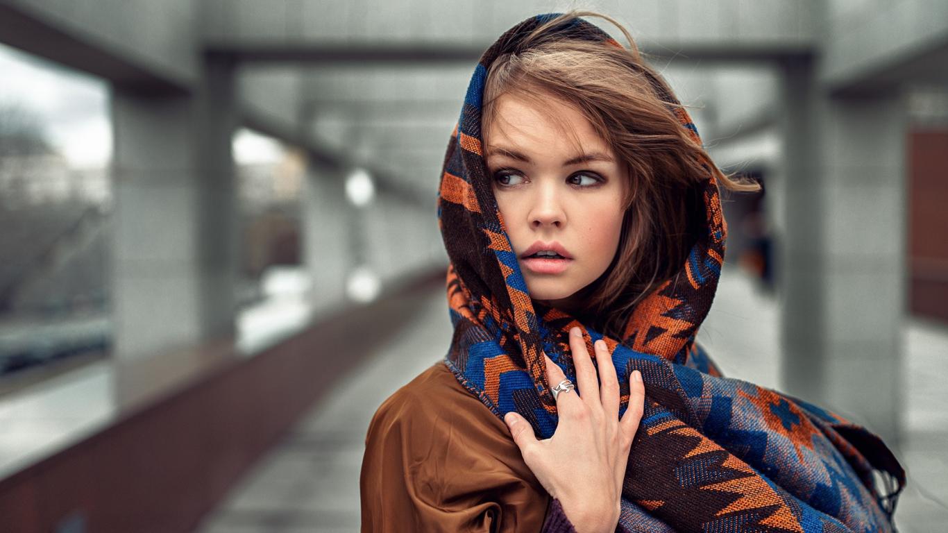 Обои Девушка накинула шаль на голову