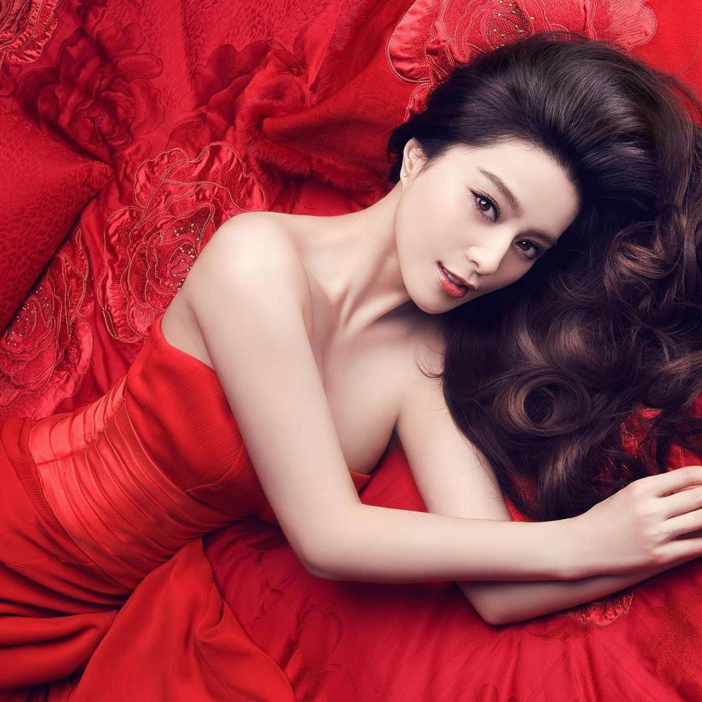 Обои Актриса Фань Бинбин в красном платье