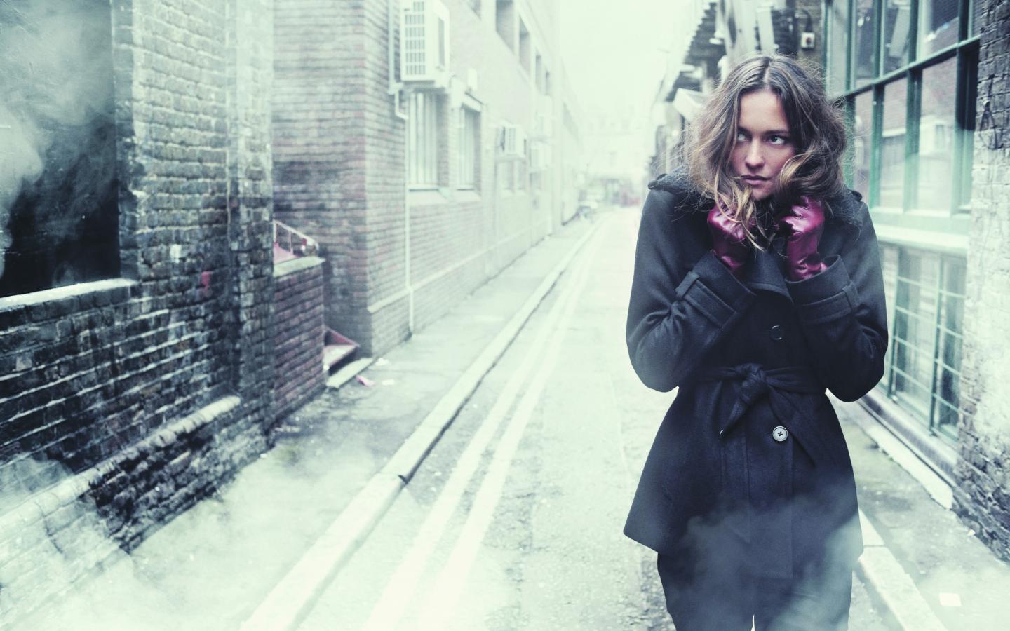Обои Девушка съежилась от холода