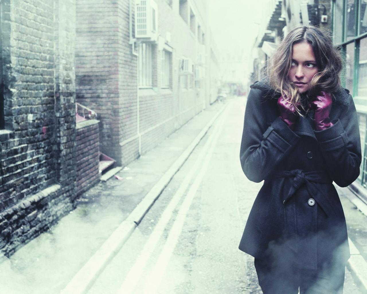 Обои Девушка съежилась от холода