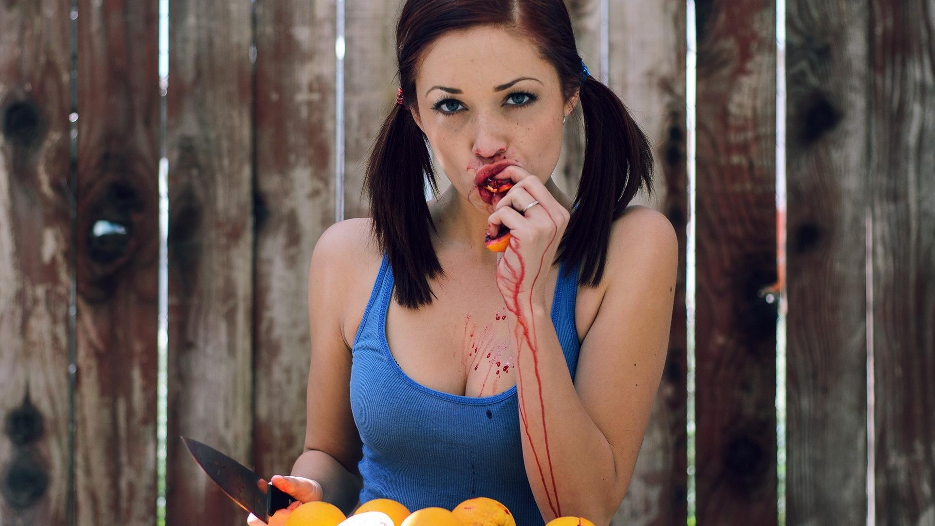Обои Девушка со вкусом ест марокканские апельсины