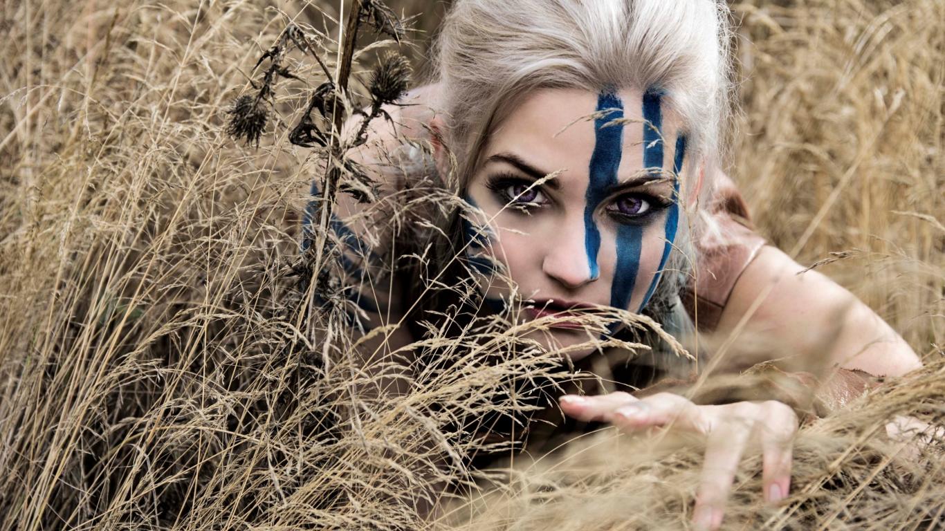 Обои Девушка с синей раскраской на лице