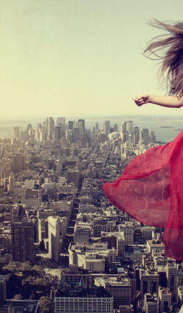 Обои Девушка акробат над городом