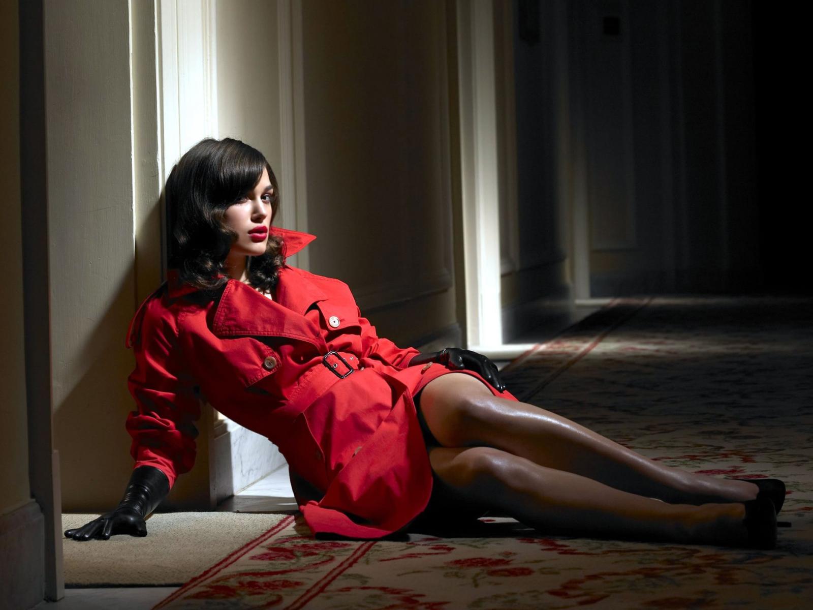Обои Девушка сидит на полу в коридоре отеля