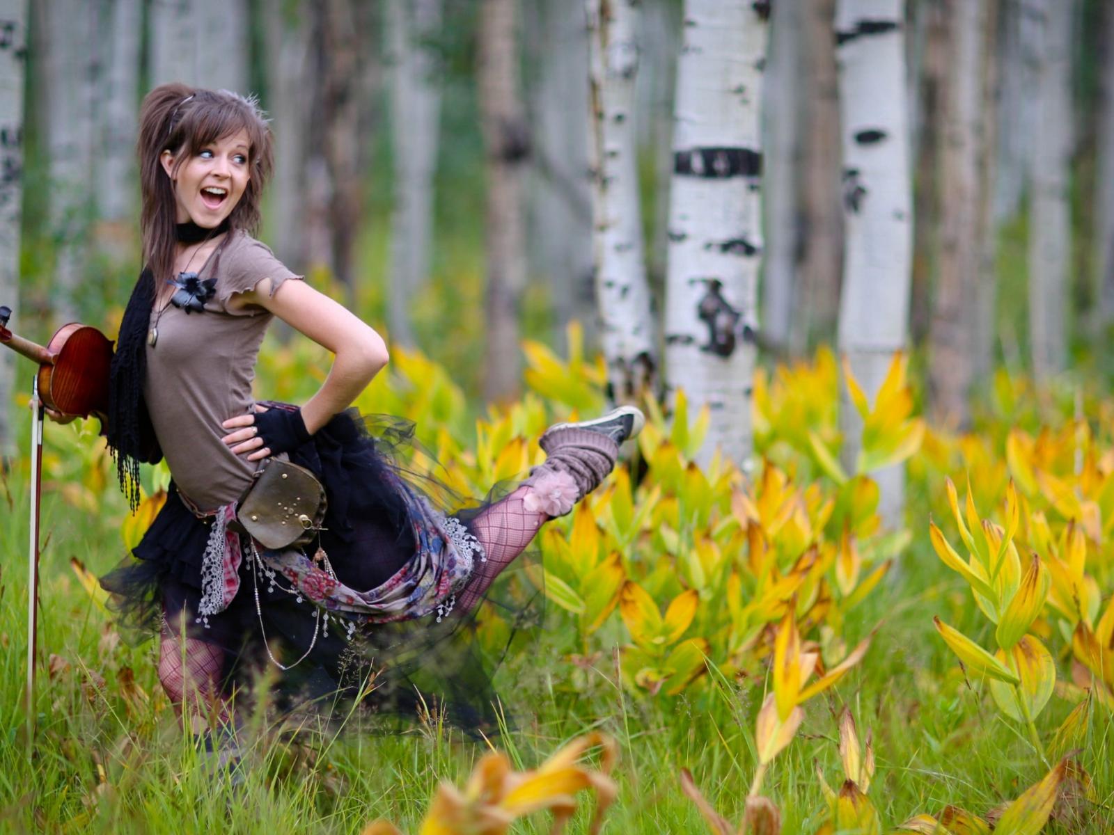 Обои Скрипачка в березовой роще