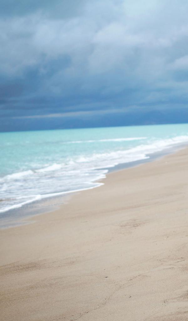 Обои Девушка в белом платье идет по пляжу