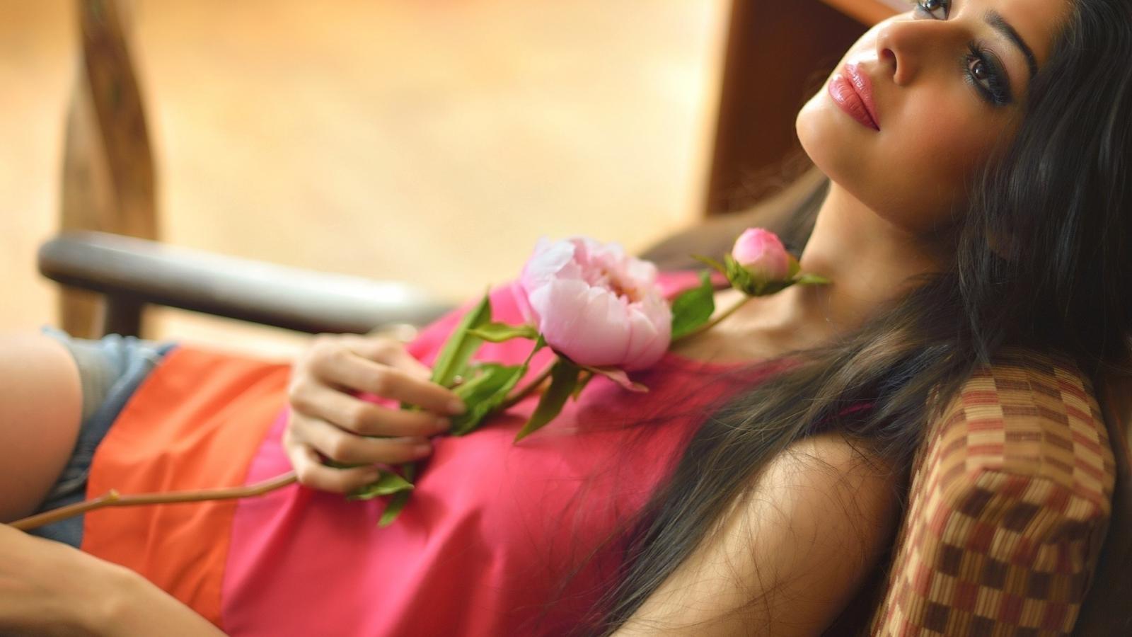 Обои Девушка лежит с цветком на груди