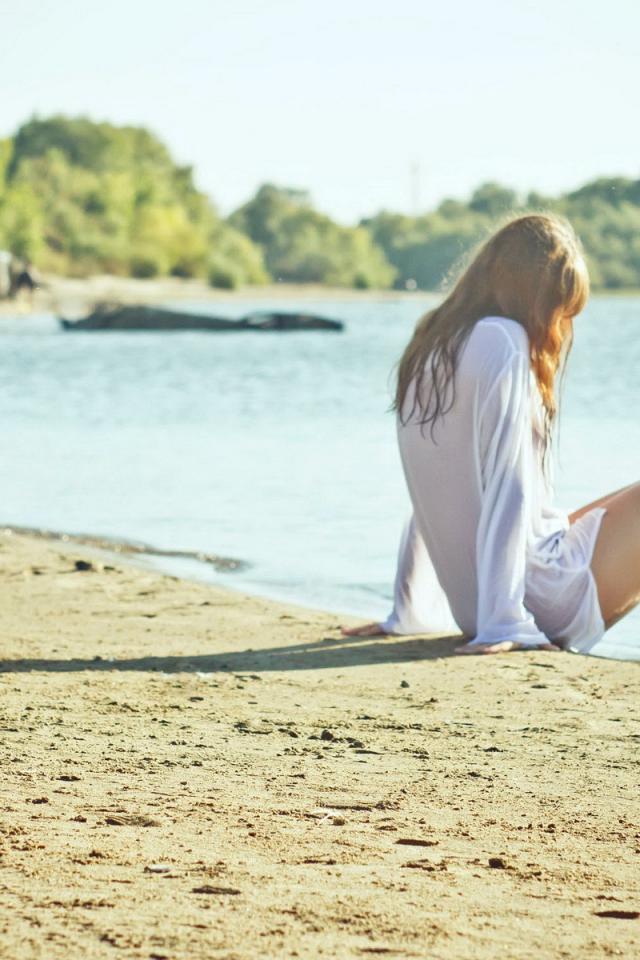 Обои Девушка в белой рубашке на берегу