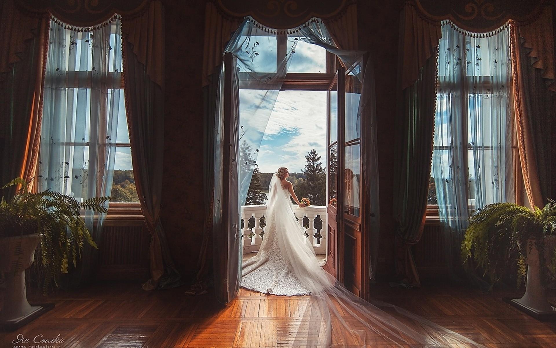 Обои Невеста стоит на балконе